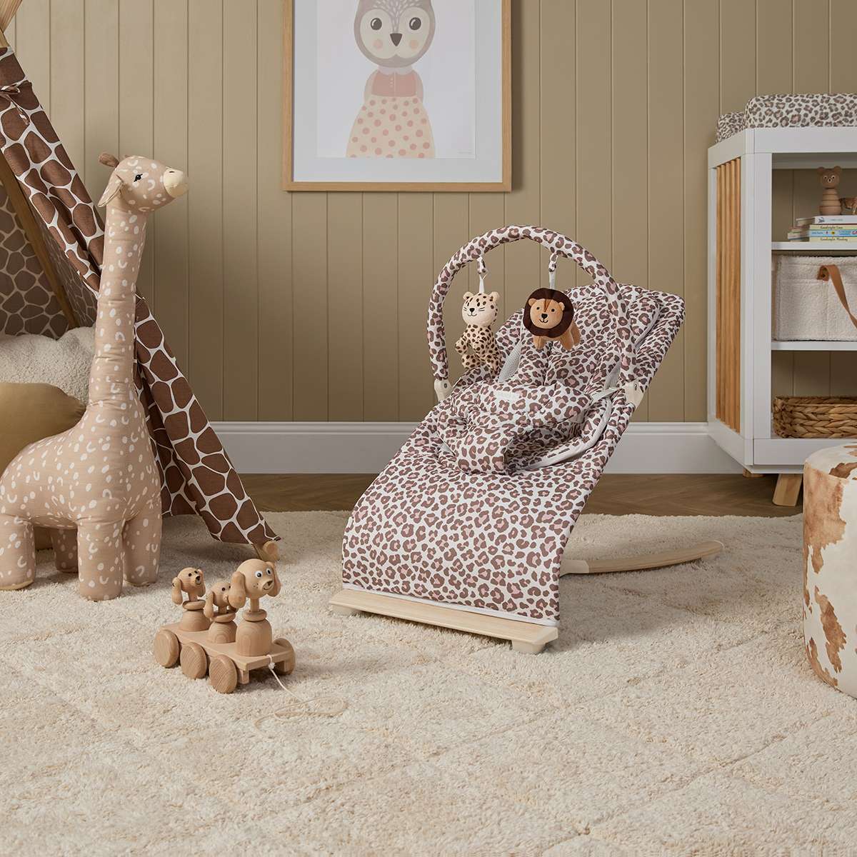 Keep your little one comfy and entertained with the Aubrey Animal Bouncer - Leopard. Perfect for neutral nursery styles, its easy-to-fold design is ideal for storage or travel. With a soft, cosy seat and calming bounce, this sturdy bouncer is perfect for everyday use. Plus, the machine-washable cover ensures hassle-free cleaning.
