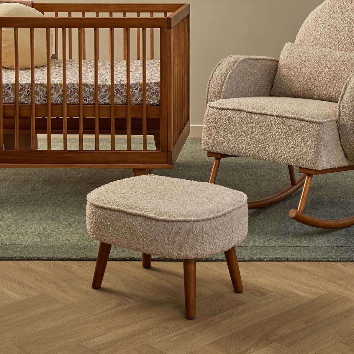 Complete your space with the stylish Buddy Stool in soft latte boucle and rich wood-toned legs. Lightweight at just 2.8 kg, this versatile footstool pairs perfectly with the Buddy Rocker or works beautifully on its own in your nursery, bedroom, or lounge. A cosy yet chic accessory for any room.