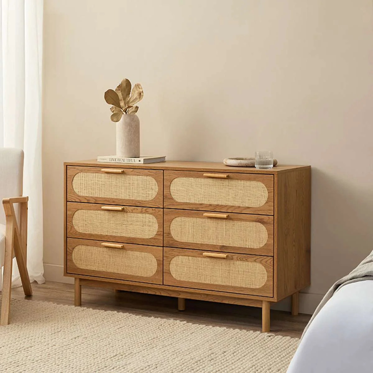 The Canyon Six Drawer is the perfect addition to your home, adding a touch of natural beauty and a warm, organic feel. Its intricate rattan-look weave design brings on-trend style to your bedroom and living spaces for a beautiful statement piece that'll elevate your decor. The six sliding drawers provide ample storage for all your essentials and will be a true workhorse in your home. Designed in-house, this stylish unit is ideal as a dresser or sideboard in a bedroom, nursery or living space. With its warm and inviting style, this buffet unit helps you create a stylish home you love.