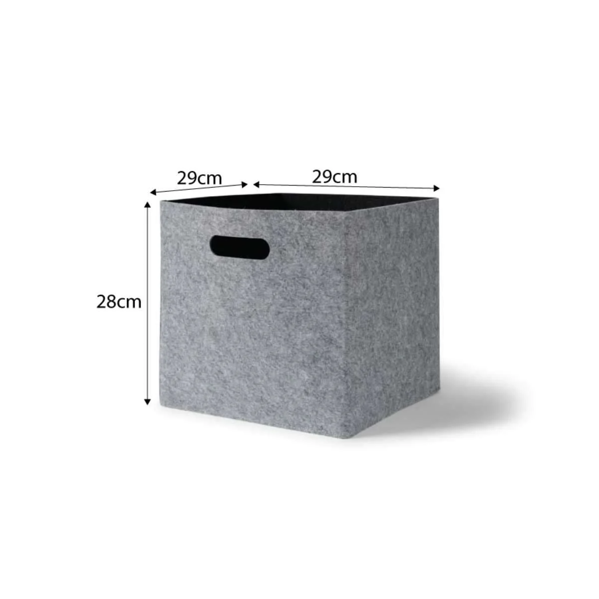 The Felt Cube Basket - Grey pairs modern style with a durable felt finish to create a stylish and practical felt basket suitable for any home or office. At 28cm high x 29cm wide x 29cm deep, these baskets are perfectly sized to fit our Essentials Cube units. The grey felt body and open slot handle gives these baskets a simple but super-cool look and will reinvent any study nook or kids' bedroom/playroom. Use to store toys, homework, stationery and games and keep them tidy and out-of-sight. The soft baskets are easy to use for children as well and are designed to last - no matter how rough little ones may be in their haste to get to their favourite toy.