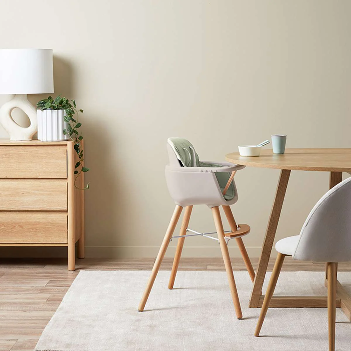 From a secure baby chair to a practical toddler chair, the Jenson highchair features extendable legs and a removable tray for ease of use. With easy-to-clean surfaces and calm, sage colourway, it effortlessly complements any dining space, making meal times simpler and more stylish.