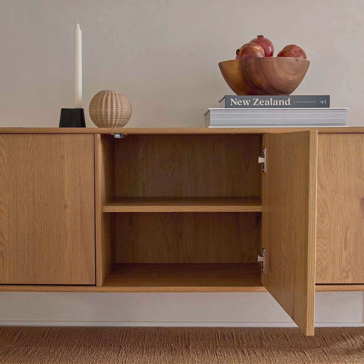 Elevate your space with the Madeira Storage Console Table in Natural. Featuring a warm wood-look finish, three push-to-open cupboards, and a textured woven paper shelf, this modern farmhouse or coastal-style piece offers both style and storage. Perfect for hallways or living areas, it’s ideal for displaying your favourite decor while keeping essentials organised.