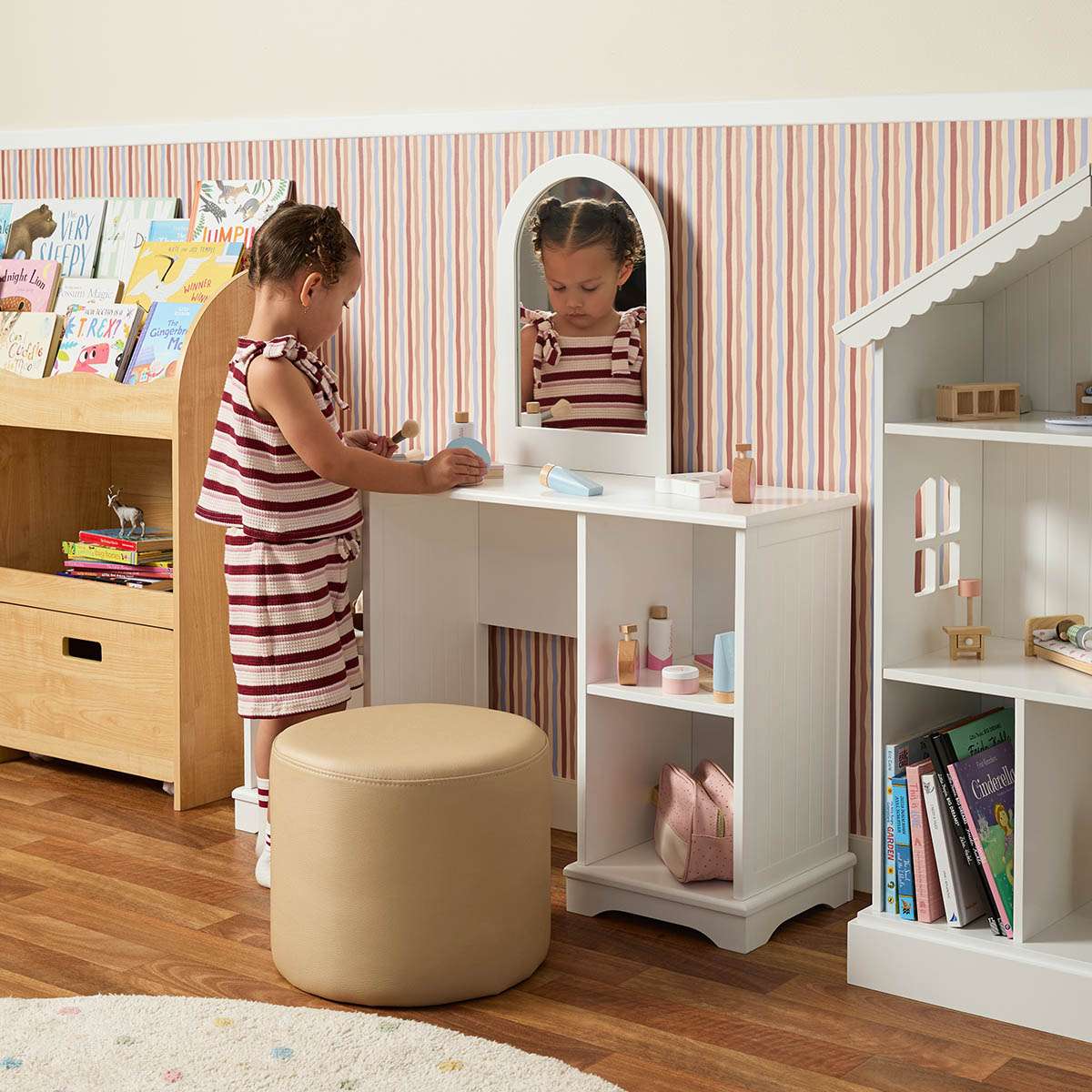 Coordinate with our Mini Moo Stool, which fits neatly under the vanity. This stool is the ideal height for little ones to sit comfortably while playing, adding convenience and style to their play area.