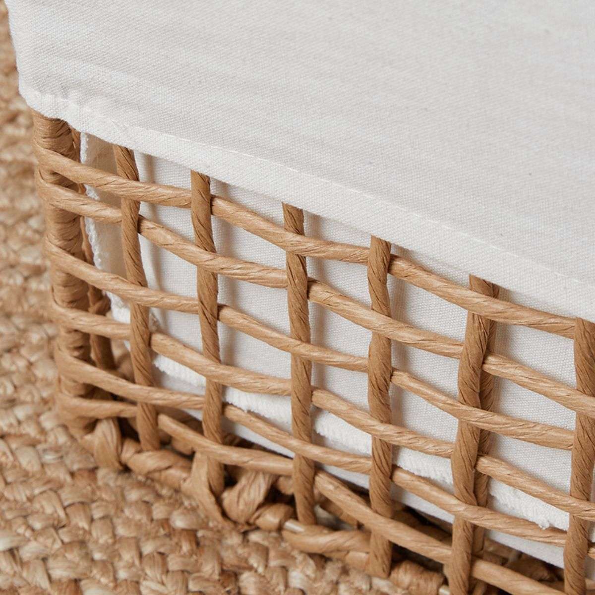 Storage doesn't have to be mundane. This cube basket combines form and function, offering ample storage space while maintaining a stylish appearance. The fabric lining adds a touch of luxury, protecting your items and adding a refined touch to your organisation.