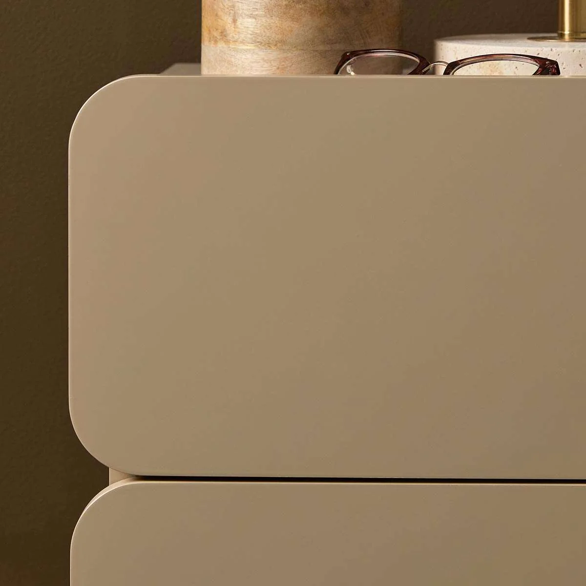 With curved corners, an oversized round base, and a painted finish, this design adds a modern, soft look to your room, blending effortlessly with different styles and warm tones.