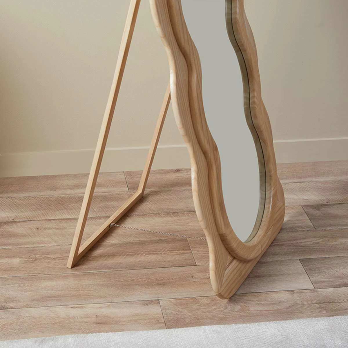 Transform any room with the playful charm of the Wave Mirror. Featuring a stylish wavy silhouette made from solid wood, this full-length mirror brightens and enlarges spaces, making it perfect for smaller rooms or those in need of a light boost. Ideal for your hallway, bedroom, or living area, it adds a touch of fun and sophistication to your home.